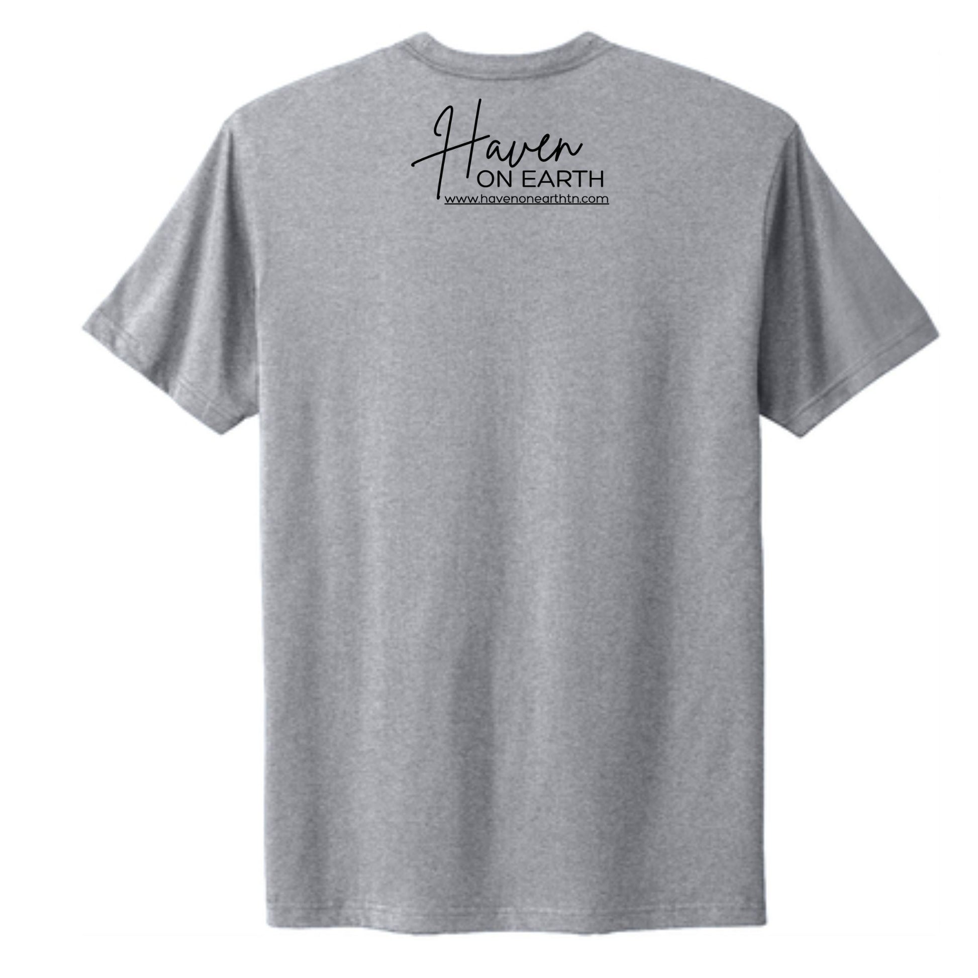 Unisex 100% combed ring spun cotton t-shirt with side seams. Tear away label. Back Haven on Earth Logo by tag.